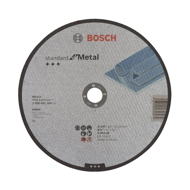 Standard for Metal 2608603168 е диск на BOSCH, който е предназначен за рязане на стомана, метални тръби и профили, цветни метали и чугун. Интересен факт е че специалната абразивна смес позволява работа върху различни материали, което автоматично го прави този диск със широк спектър на работа. Тънкият дизайн на диска предлага лесно и бързо рязане с малко усилие, по-малко шум и минимален прах.