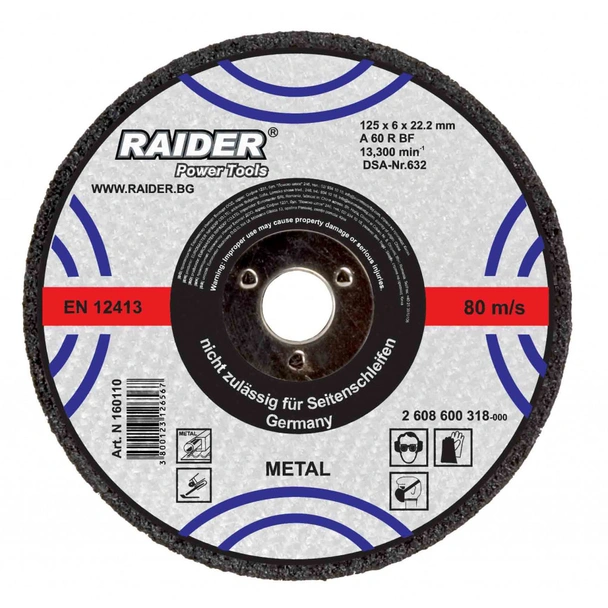 Диск за шлайфане на метал на марката Raider за универсално приложение в металообработването.