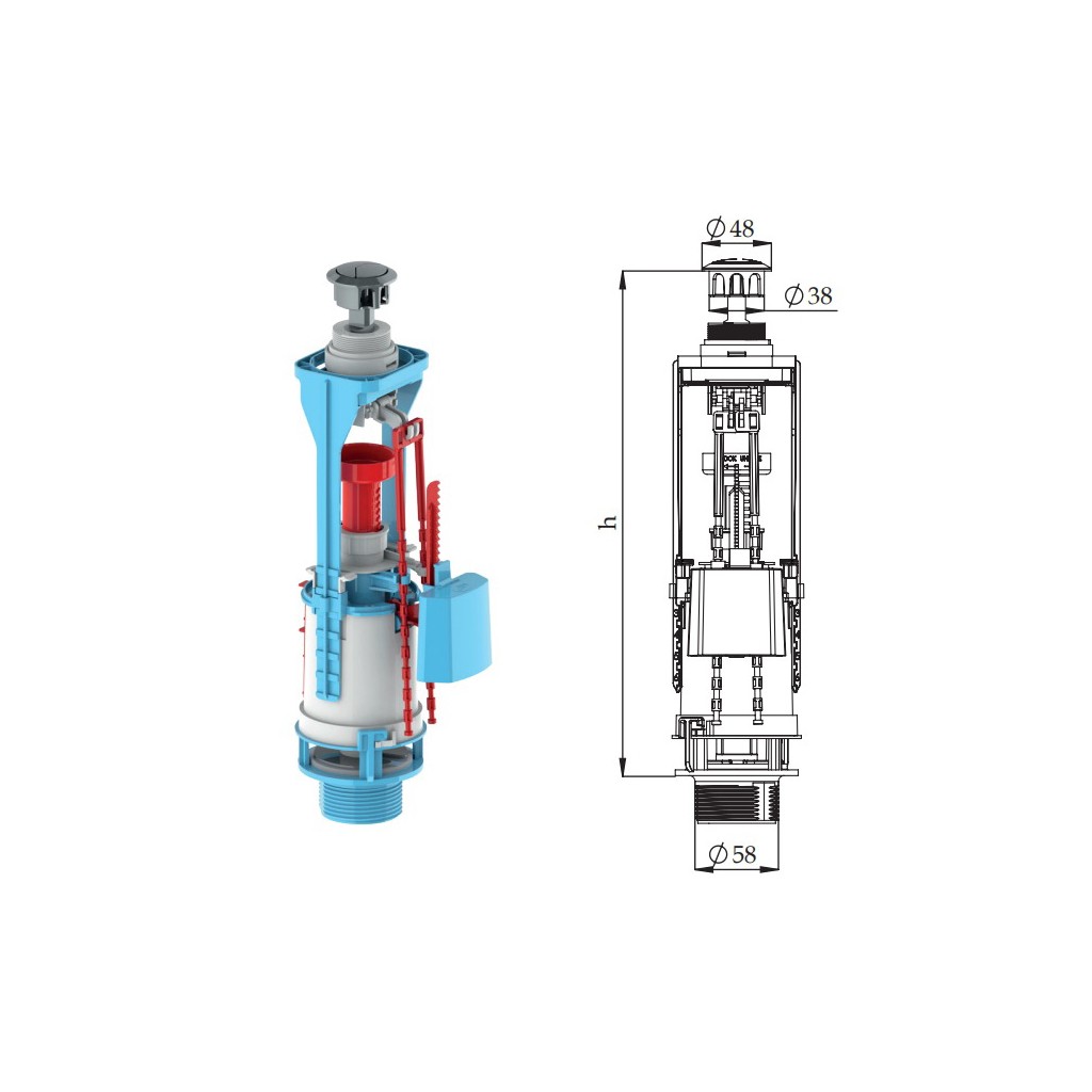 Изпразващият механизъм е създаден с акцент върху удобството при монтаж и поддръжка. Конструкцията позволява бързо напасване към различни височини на казанчето, без нужда от специализирани инструменти. Комплектът включва всички необходими елементи, за да извършите инсталацията самостоятелно и без допълнителни разходи. Прецизната изработка на уплътнителите и подвижните части осигурява плътно прилепване и дълготрайна функционалност.