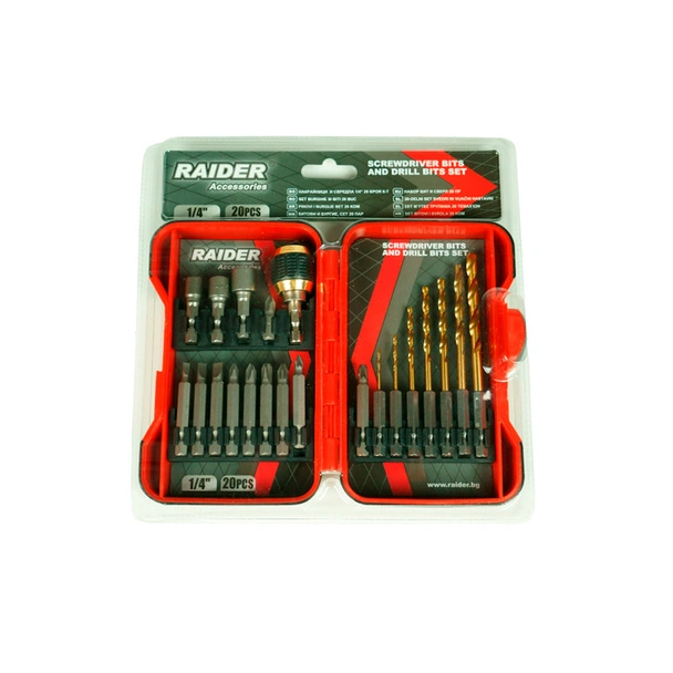 Универсален комплект от накрайници и свредла на марката Raider.