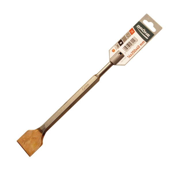 Плоско длето секач със захват SDS plus на марката Gröne, изработено от стомана.