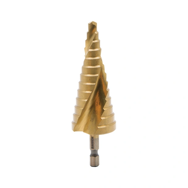 Стъпаловидно свредло за ламарина SPIRAL FLUTE HSS+TIN на марката Raider.