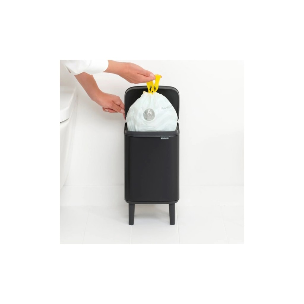 Добавете стил и функционалност във вашия дом с кош за боклук 4 л черен Bo Small Hi BRABANTIA. С елегантен дизайн и компактни размери, той е идеален за малки пространства, където искате практично решение без компромис с външния вид.