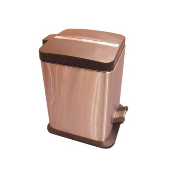 Квадратно тоалетно кошче за баня с вместимост 6 л. Моделът е изработен в цвят сатен и разполага с педал за отваряне на капака.