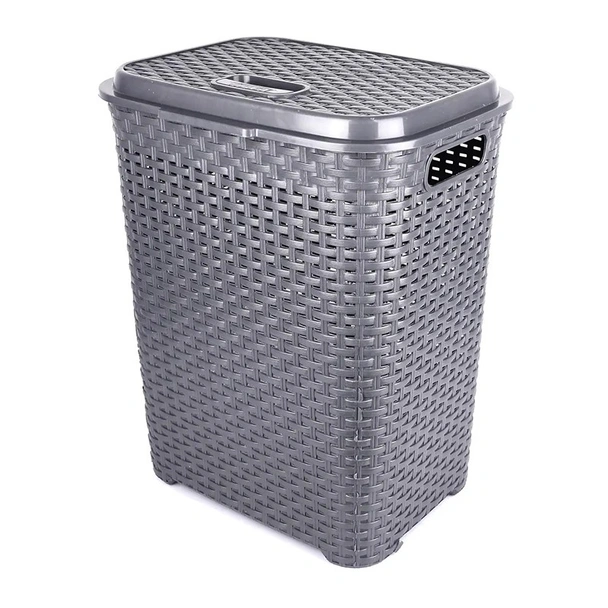 Кош за пране в цвят металик и вместимост 45 литра.