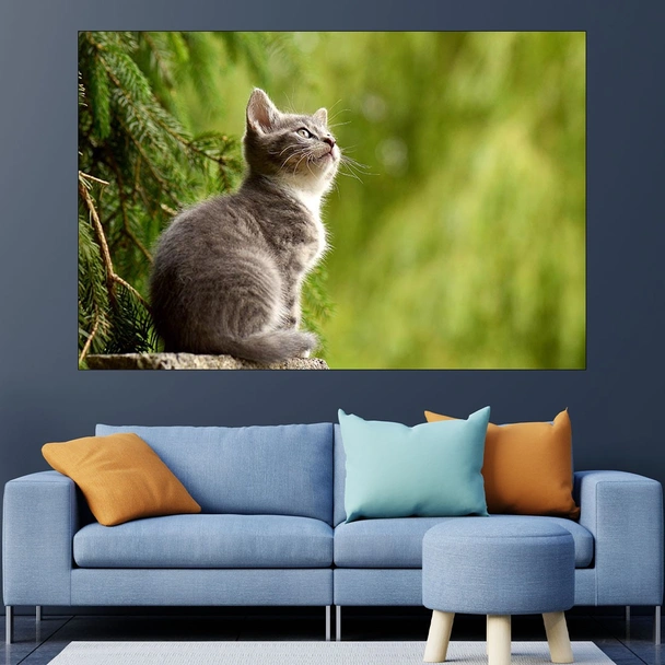 Декорация за стена (картина, пано) с мотив "Портрет на коте в гората - картина пано за стена". Изработена от олекотено PVC с дебелина 5 мм или канава от 100% памук, опъната върху дървена подрамка с дебелина 5 см. Изображението се печата с висококачествен UV печат, което е гаранция за запазване на цветовете с години!