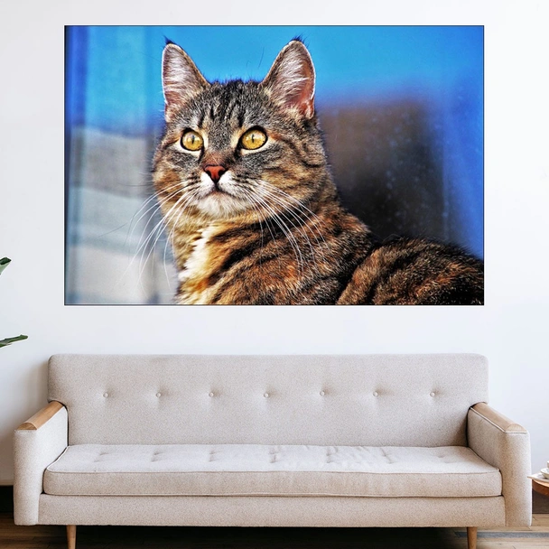 Декорация за стена (картина, пано) с мотив "Портрет на улична котка - картина пано за стена". Изработена от олекотено PVC с дебелина 5 мм или канава от 100% памук, опъната върху дървена подрамка с дебелина 5 см. Изображението се печата с висококачествен UV печат, което е гаранция за запазване на цветовете с години!