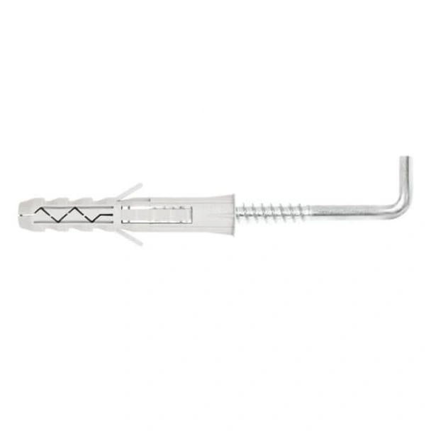 Дюбел за бетон с L-образна кука на марката WKRET-MET. Изработен от полипропилен и стомана. Използва се монтаж на довършителни интериорни продукти като корнизи, рафтове, шкафове, лампи и други към стени от бетон или плътни тухли.