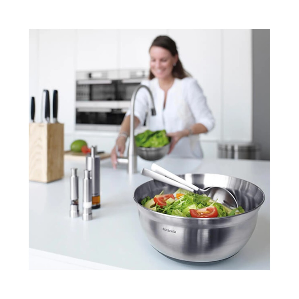 Купата за бъркане BRABANTIA Profile Matt Steel/Black с вместимост 3 литра е създадена да улесни всяка кулинарна стъпка – от смесването на съставки за десерти до приготвянето на тесто и салати. Изработена от висококачествена неръждаема стомана и снабдена с неплъзгаща се основа, тя е едновременно практична и стилна. Сребристо-черният дизайн я прави елегантен аксесоар за всяка модерна кухня.