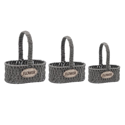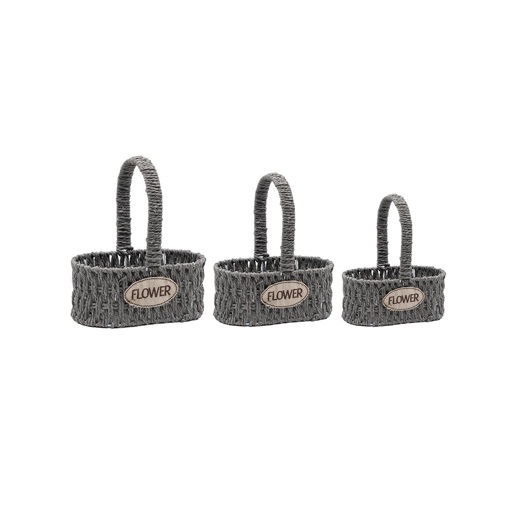 Комплектът от овални кошници Flower в сив цвят съчетава стил, практичност и универсалност. Изработени от метална основа и устойчив усукан хартиен материал, тези кошници предлагат надеждност и елегантен външен вид, който се вписва чудесно както в модерни, така и в класически интериори. Подходящи са за подреждане, съхранение или декорация, а благодарение на трите различни размера ще откриете множество приложения в дома или градината.