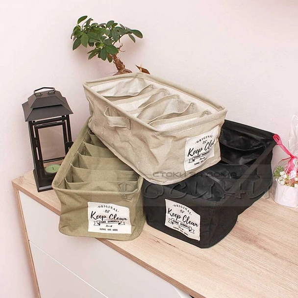 Текстилен органайзер панер с шест широки отделения, подходящ за шкаф, чекмедже, гардероб.