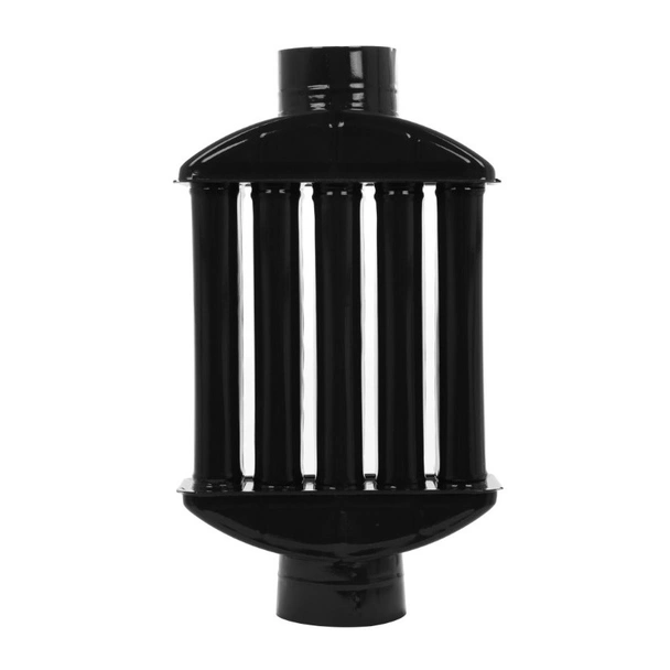 Черният радиатор-топлообменник с пет ребра е практично и ефективно решение за всяко домакинство, което използва уреди на дърва. Този аксесоар за димоотвод е проектиран така, че да улавя топлината, която иначе би се изгубила, и да я разпределя в помещението. По този начин отоплението става по-икономично, а комфортът у дома – значително по-голям.