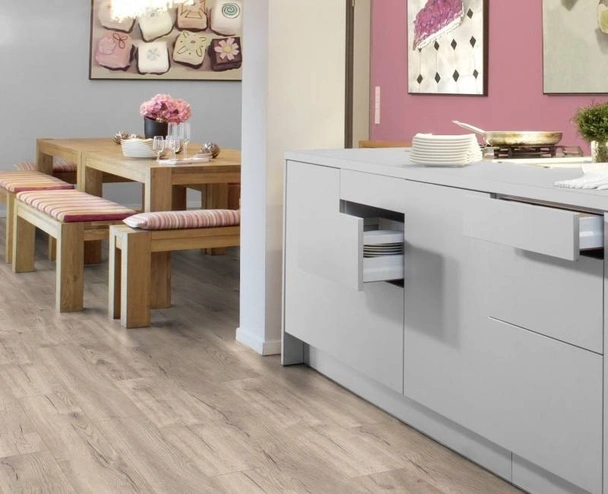 D3073 е ламиниран паркет от висок клас на устойчивост AC5. Ламината е с четиристранна V-образна фаска, което подчертава идентичноста му.