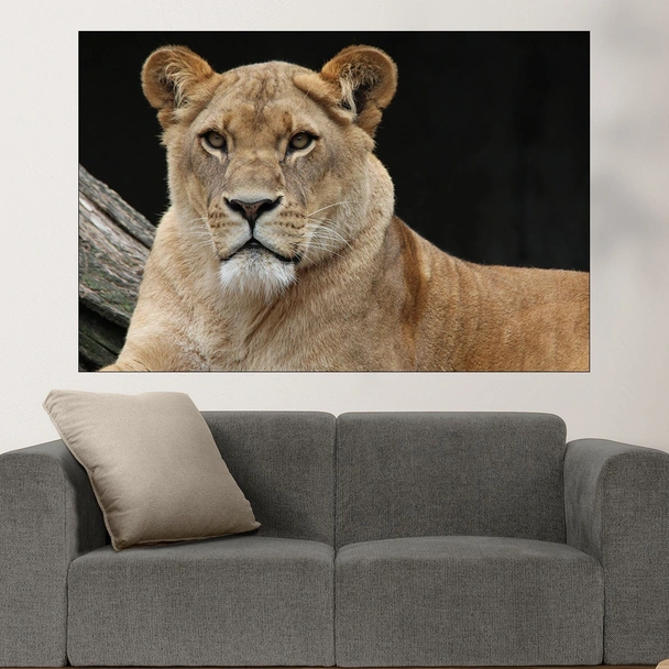 Декорация за стена (картина, пано) с мотив "Портрет на лъвица - картина пано за стена". Изработена от олекотено PVC с дебелина 5 мм или канава от 100% памук, опъната върху дървена подрамка с дебелина 5 см. Изображението се печата с висококачествен UV печат, което е гаранция за запазване на цветовете с години!