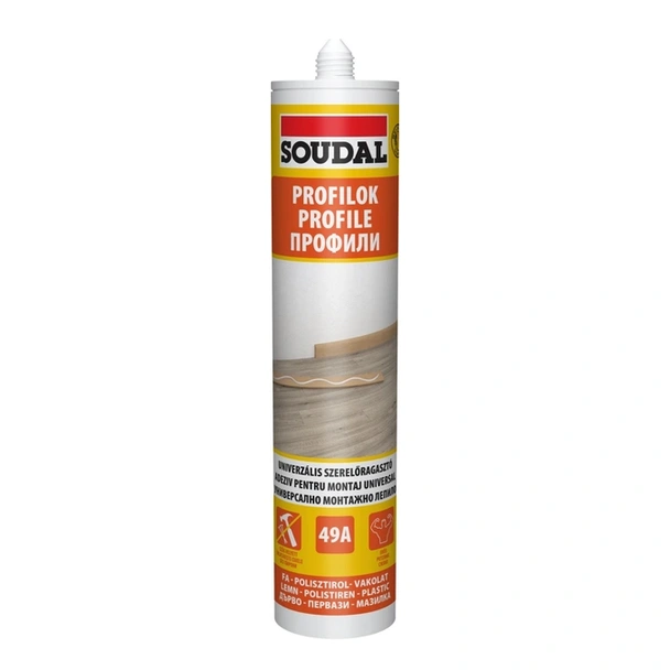 Универсалното лепило 49А е високоефективен монтажен продукт тип „течен пирон“, базиран на висококачествен синтетичен каучук. То е проектирано за бърза полимеризация и осигурява превъзходна адхезия към почти всички масови строителни материали. Формулата съдържа неагресивни разтворители, които подпомагат бързото свързване, без да увреждат повърхностите. Лепилото е напълно водоустойчиво след втвърдяване, което го прави надежден избор за монтажни дейности както в интериора, така и при външни атмосферни условия, запазвайки здравината на връзката при температурни амплитуди.