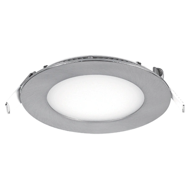Kръгъл Led панел от алуминий с диаметър 120 мм, цвят сатен никел. Подходящ за осветяване и декориране на интериорни пространства. Предназначен за вграден монтаж. Мощност 8 W, цветна температура: 2700-300K, светлинен поток: 640lm, степен на защита: IP40, живот на лампата: 30000h.
