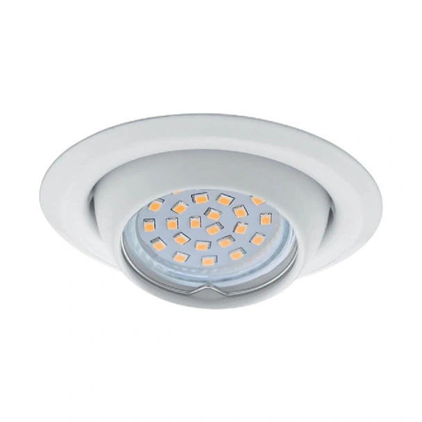 Подвижна луна на марката Vivalux с кръгла форма, изработена от щампована стомана, 12V, за халогенна лампа MR16, 50 mm. Предлага се в бял цвят.