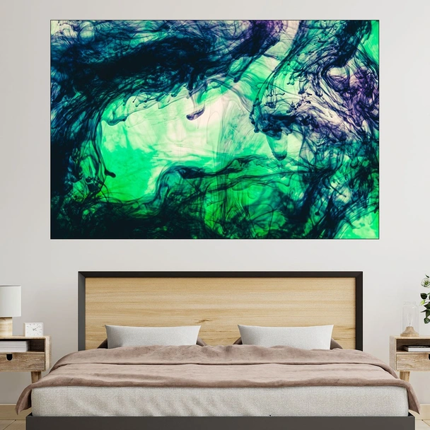 Декорация за стена (картина, пано) с мотив "Абстрактно мастило във вода - картина пано за стена". Изработена от олекотено PVC с дебелина 5 мм или канава от 100% памук, опъната върху дървена подрамка с дебелина 5 см. Изображението се печата с висококачествен UV печат, което е гаранция за запазване на цветовете с години!