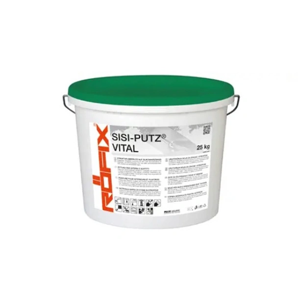 Силикат-силиконова структурна завършваща мазилка SiSi-Putz Vital база А на марката RÖFIX, предназначена за фасади и за ТИС (топлоизолационни системи).