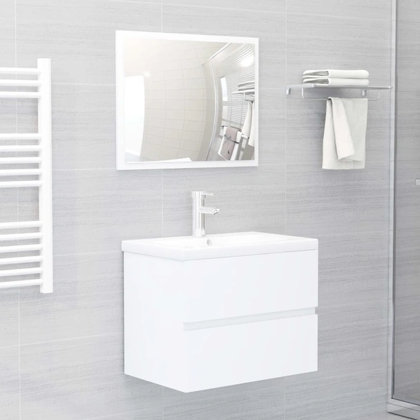 Комплект мебели за баня от 2 части, ПДЧ, бял цвят,