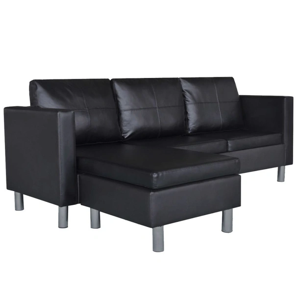 Триместен L-образен диван, изкуствена кожа, черен