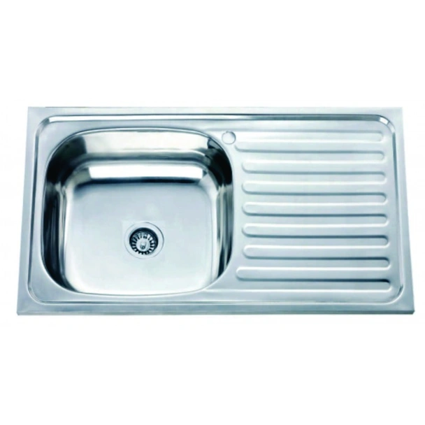 Кухненската мивка от алпака с десен плот е стилно и функционално решение, проектирано да осигури максимално удобство при ежедневните кухненски дейности. Изработена от висококачествена неръждаема стомана с хромирано и гланцирано покритие, тя предлага не само висока устойчивост, но и модерен огледален блясък, който лесно се вписва във всеки интериор. Този модел е идеалният избор за потребители, които търсят практичност, съчетана с класически дизайн и лесна поддръжка.