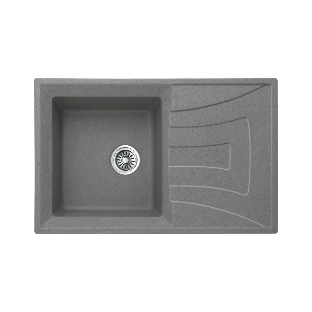 Стилен дизайнерски умивалник с модерна визия, изработен изцяло от гранит в сив цвят. Умивалникът е с изчистен и елегантен дизайн, предназначен за вграждане в кухня. разполага със сифон, с едно корито и един плот.
