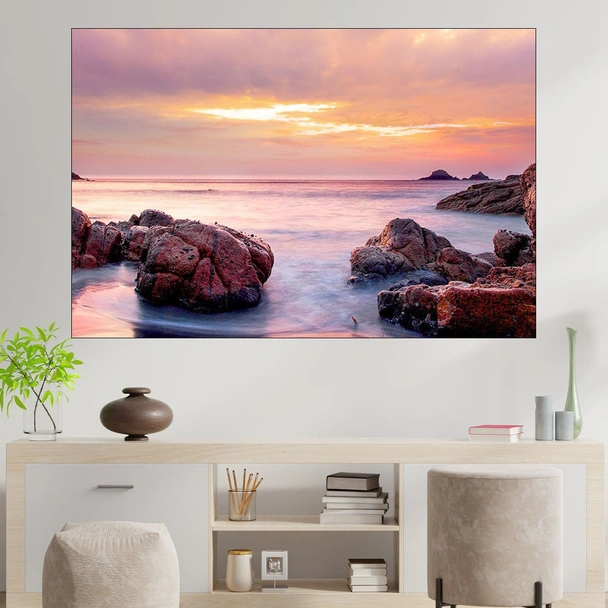 Декорация за стена (картина, пано) с мотив "Каменист морски бряг в Исландия - картина пано за стена". Изработена от олекотено PVC с дебелина 5 мм или канава от 100% памук, опъната върху дървена подрамка с дебелина 5 см. Изображението се печата с висококачествен UV печат, което е гаранция за запазване на цветовете с години!