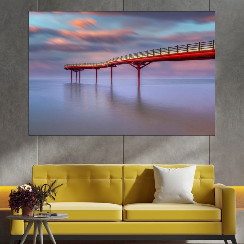 Декорация за стена (картина, пано) с мотив "Мост над морето - картина пано за стена". Изработена от олекотено PVC с дебелина 5 мм или канава от 100% памук, опъната върху дървена подрамка с дебелина 5 см. Изображението се печата с висококачествен UV печат, което е гаранция за запазване на цветовете с години!