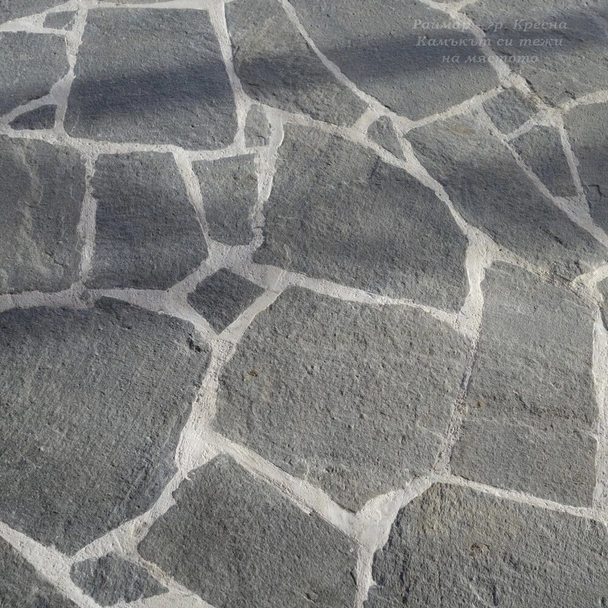 Настилка от едри плочи от Сиво-син гнайс 1-3 см