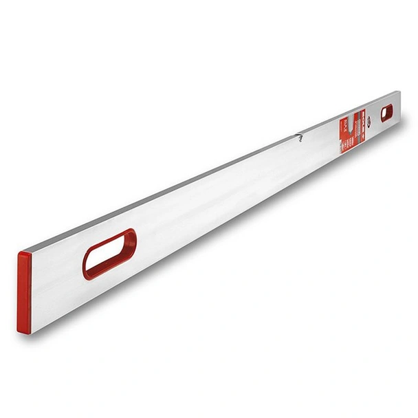 Aлуминиев тръбен профил с напречно ребро. Tегло на профила около 870 г/ лин.метър. Размер около 100 x 18 мм, 1 хоризонтална либела и 1 вертикална либела. 2 пласмасови ръкохватки. Мax. отклонение в стандартна позиция: 1 мм/м (0,057°).