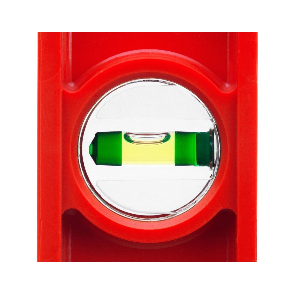 Нивелир от червена разпенена специална пластмаса, правоъгълна форма. По-добро, по-бързо и по-точно отчитане чрез патентованите флакони SOLA FOCUS Акрилни флакони, устойчиви на разрушаване, с лупа (+ 20%) и гаранция за стягане от 30 години. По-добра четливост при слаба светлина чрез оптимизирана светлинна подложка SOLA.