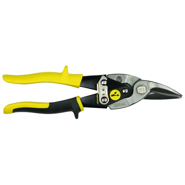Ножица за ламарина с ляво рязане от 2-ро поколение на марката Topmaster с двукомпонентни ръкохватки, предпазващи от плъзгане и осигуряващи удобство и контрол при работа.