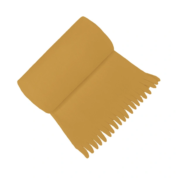 Поларено одеяло с ресни с размери 100x150 см, изработено от полиестер в цвят горчица.