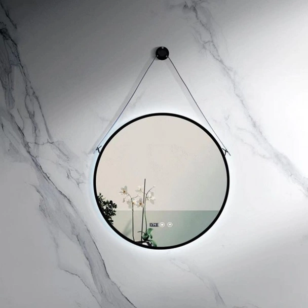 Изработено с черна стоманена рамка, това кръгло огледало създава модерен акцент във всяка баня. Подходящо е за стенен монтаж, като внася елегантност и технологичен напредък в ежедневието ви.