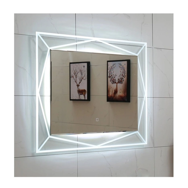 Огледало за баня със стилна и модерна визия, изработено в правоъгълна форма от серия Арилена, произведено с размери 60 х 80 см. Огледалото е оборудвано с вградено LED осветление "Touch screen".