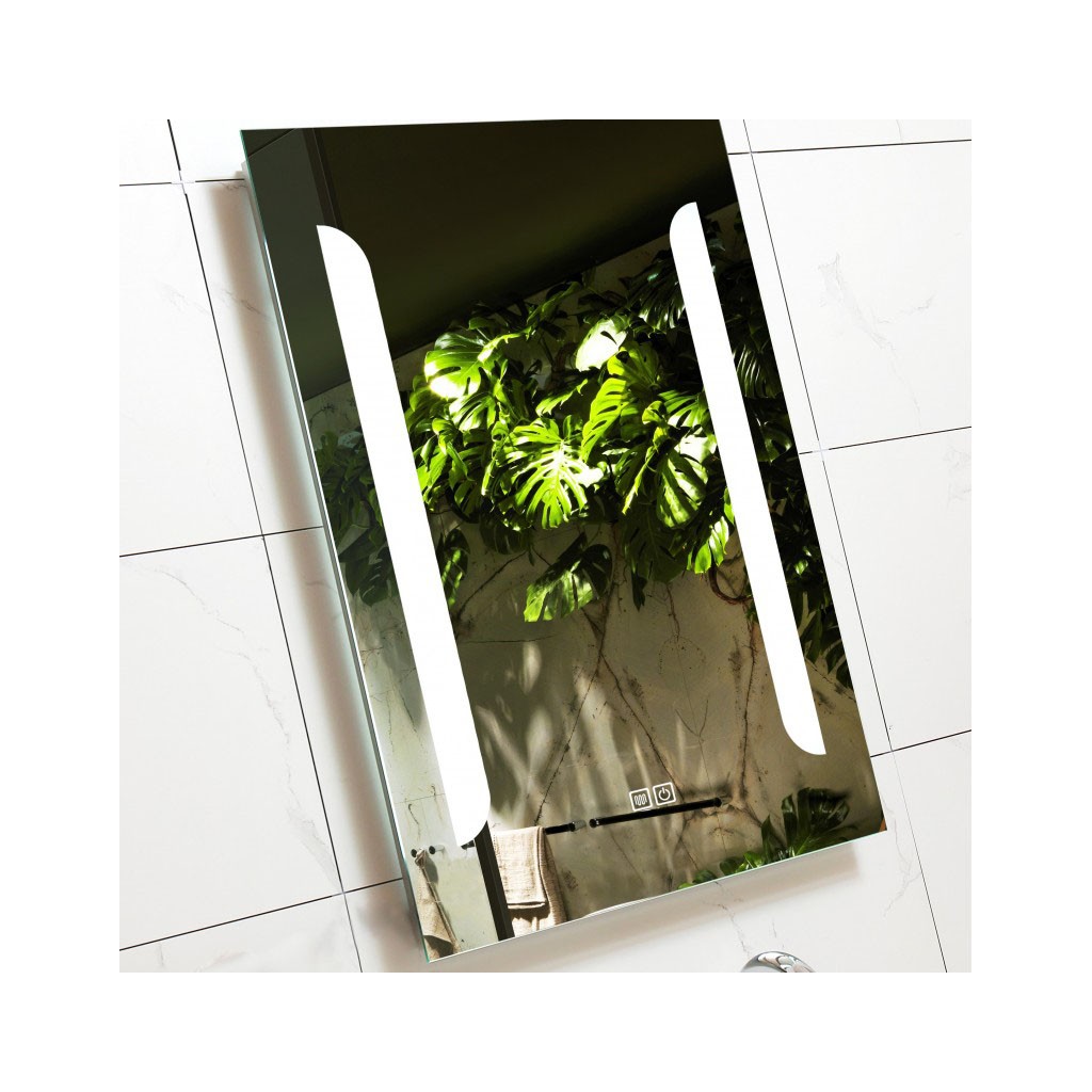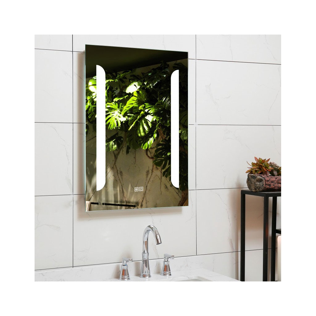 Изберете огледало за баня с LED осветление 50x70 см ICL 1591, за да добавите изисканост и удобство към вашата баня. Благодарение на LED осветлението и anti-fog функцията ще се наслаждавате на кристално чисто отражение всеки ден.