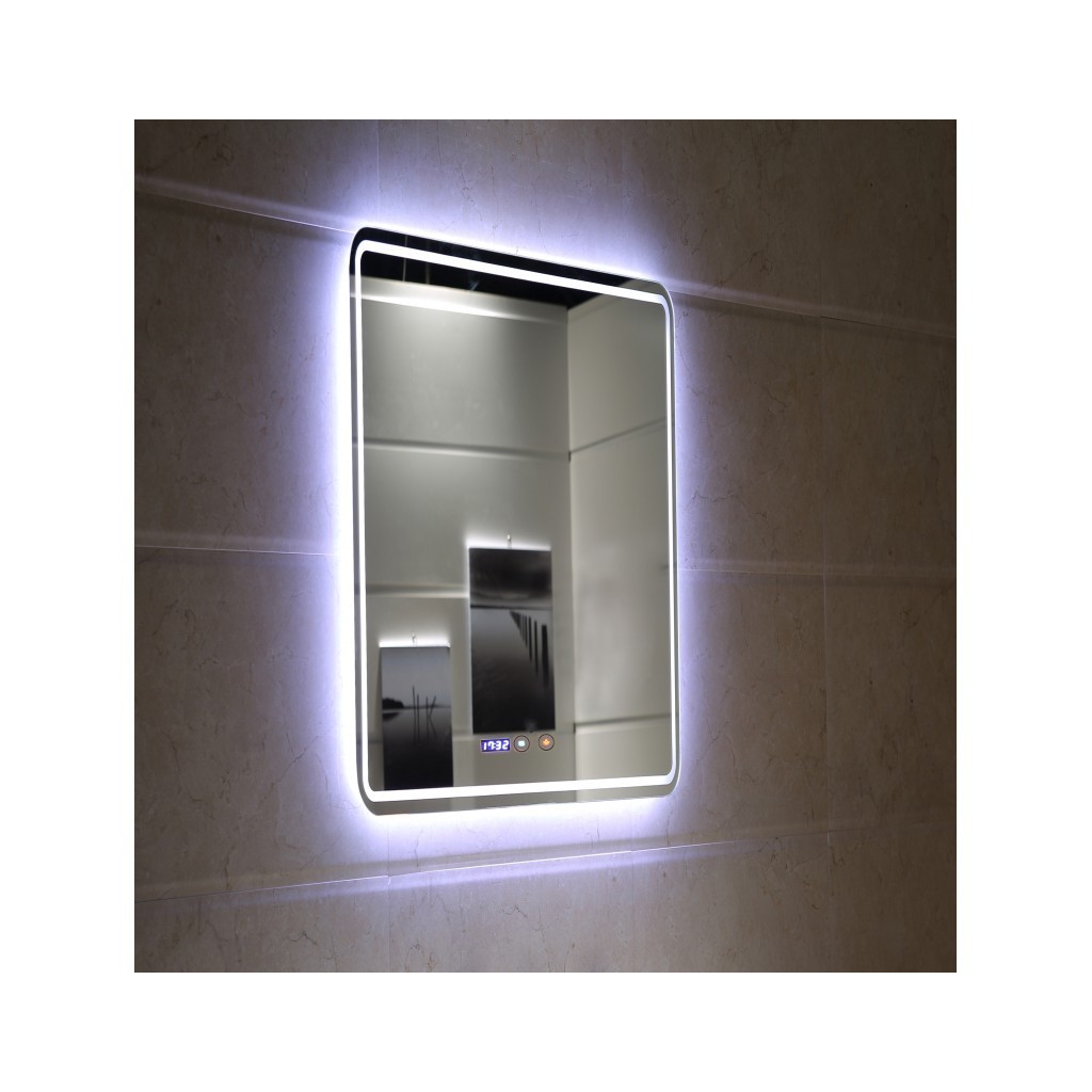 Огледалото ICL 1799 разполага с висококачествено LED осветление с цветна температура от 6500K, което осигурява ярка и неутрална светлина, идеална за прецизни дейности като гримиране или бръснене. Управлението на осветлението е лесно и интуитивно чрез чувствителен на допир Touch screen бутон. Една от най-ценните функции на този модел е вградената система против замъгляване, която гарантира, че огледалото ще остане кристално чисто дори след горещ душ. Освен това, то е оборудвано с дигитален часовник и индикатор за температура, които ви осигуряват полезна информация в реално време, без да се налага да използвате други устройства.