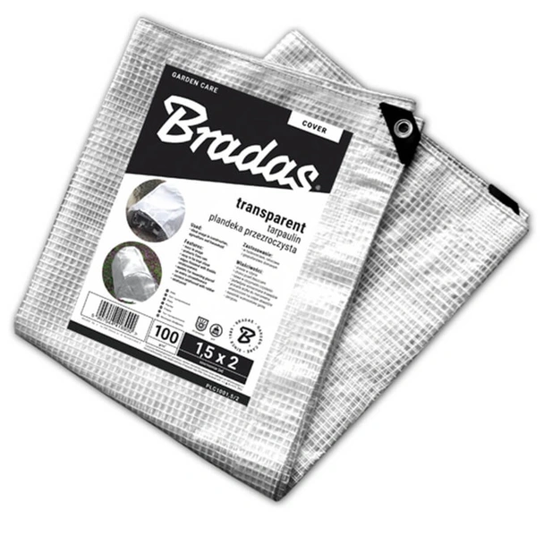 Подсилено водоустойчиво покривало - платнище Leno Cristal на марката BRADAS с размери 3x4 м, предназначено за покриване на дърва, мебели, градински предмети.