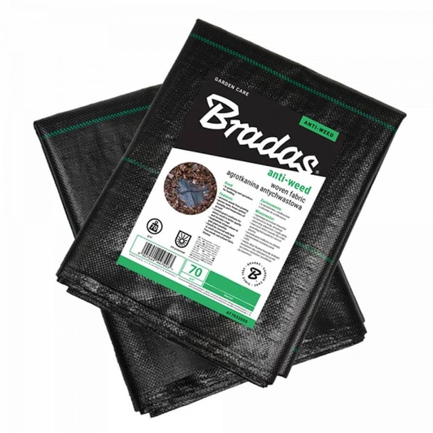 Покривало против плевели от тъкан агротекстил на марката BRADAS с широчина 0.6 м и дължина 10 м.