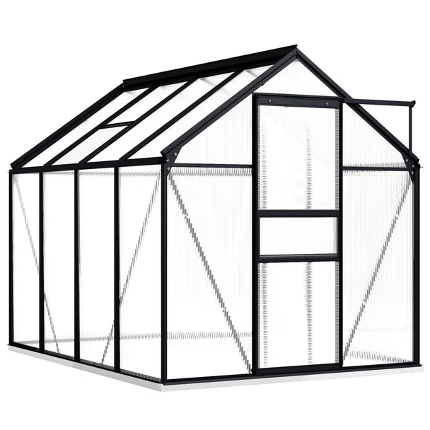 Парник с алуминиева рамка, подсилена основа, антрацит, 4,75 м²