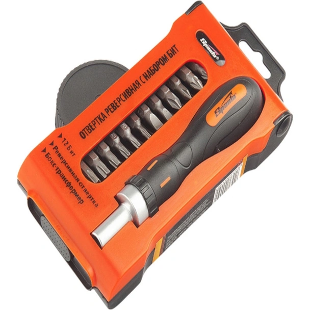 Реверсивната отвертка, с марката SPARTA е подходяща за монтаж и демонтаж на резбови съединения. Битовете (25 мм.) са направени от хромванадиева стомана. Моделът се предлага в комплект от 12 части и с удобна пластмасова кутия за съхранение.