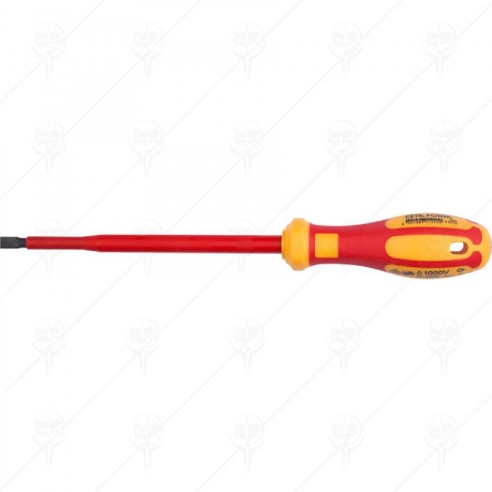 Права отвертка от SLOTTED 1000V на марката CETA-FORM с намагнетизиран връх и двукомпонентна дръжка, която допринася за по-добър захват. Ръчният инструмент е изработен от висококачествена хром-ванадиева стомана.