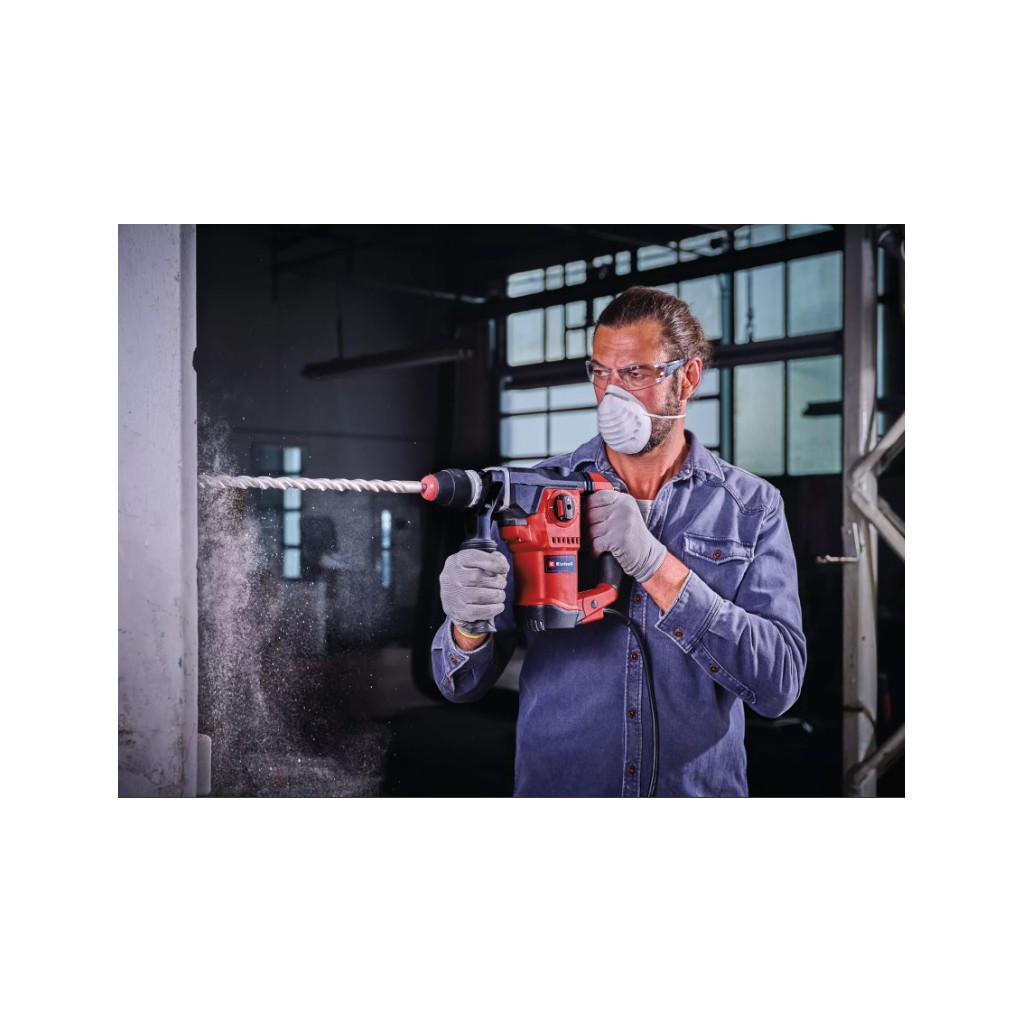 EINHELL TE-RH 32-1600 е мощен перфоратор с четири функции, създаден за взискателни ремонтни и строителни дейности. С електромотор 1600 W, сила на удара 4.5 J и пневматичен ударен механизъм, инструментът осигурява отлично представяне при пробиване, ударно пробиване и къртене. Подходящ е за обработка на твърди материали като бетон, камък, зидария, както и за универсални задачи в дърво или метал. Здравата конструкция, металните компоненти и ергономичният дизайн гарантират продължителна, безопасна и комфортна работа.