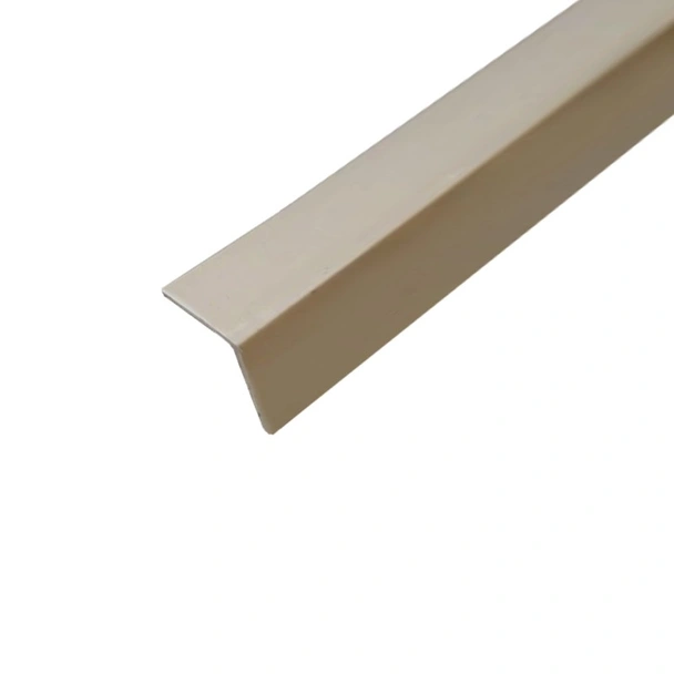Алуминиева Г-образна лайстна в цвят крем, предназначена за защита на вътрешни и външни ъгли.