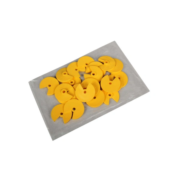 Въртящи се жълти клинчета за фуги на марката Hardy, изработени от пластмаса.