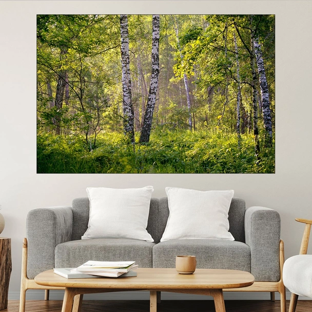 Декорация за стена (картина, пано) с мотив "Брезова гора на разсъмване - картина пано за стена". Изработена от олекотено PVC с дебелина 5 мм или канава от 100% памук, опъната върху дървена подрамка с дебелина 5 см. Изображението се печата с висококачествен UV печат, което е гаранция за запазване на цветовете с години!