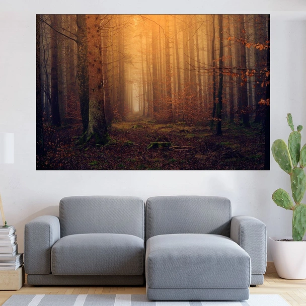 Декорация за стена (картина, пано) с мотив "Есенна гора по здрач - картина пано за стена". Изработена от олекотено PVC с дебелина 5 мм или канава от 100% памук, опъната върху дървена подрамка с дебелина 5 см. Изображението се печата с висококачествен UV печат, което е гаранция за запазване на цветовете с години!