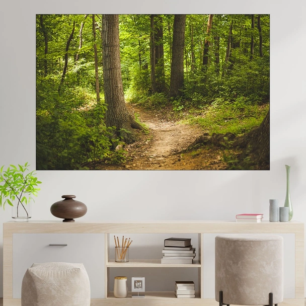 Декорация за стена (картина, пано) с мотив "Горска пътека - картина пано за стена". Изработена от олекотено PVC с дебелина 5 мм или канава от 100% памук, опъната върху дървена подрамка с дебелина 5 см. Изображението се печата с висококачествен UV печат, което е гаранция за запазване на цветовете с години!