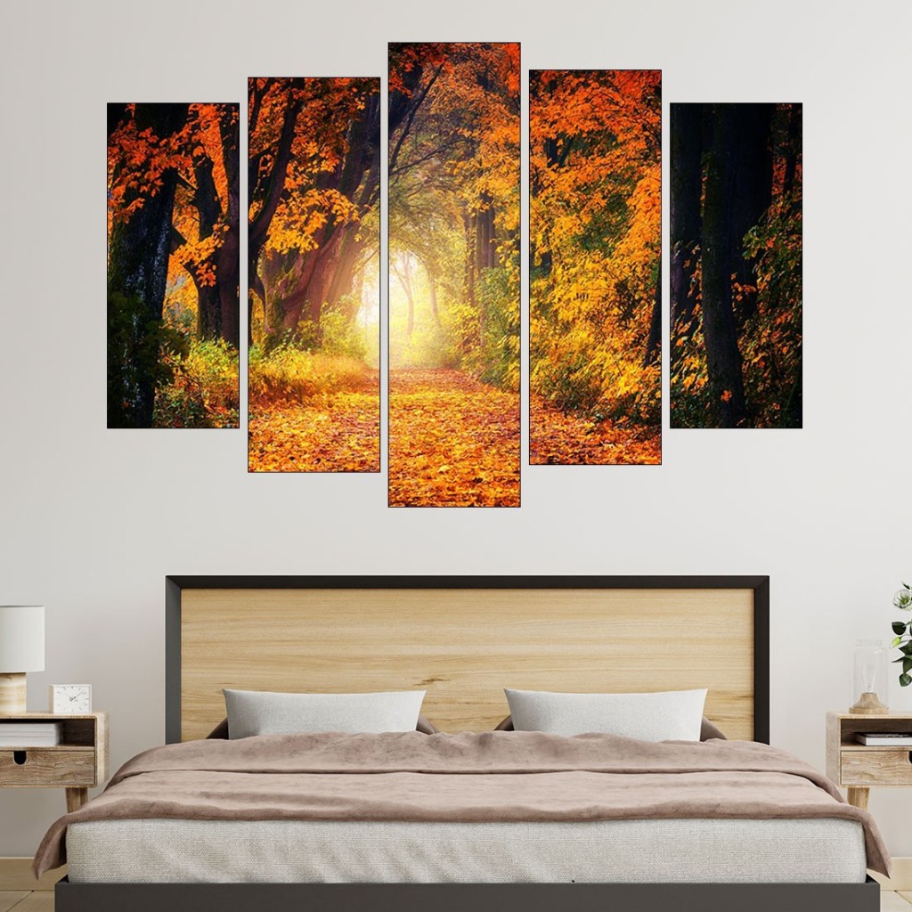 Декорация за стена (картина, пано) с мотив "Горски есенен булевард - картина пано за стена". Изработена от олекотено PVC с дебелина 5 мм или канава от 100% памук, опъната върху дървена подрамка с дебелина 5 см. Изображението се печата с висококачествен UV печат, което е гаранция за запазване на цветовете с години!